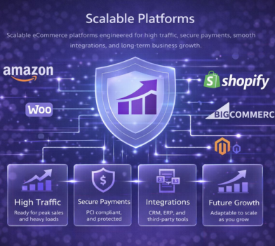 Scalable eCommerce platforms engineered for high traffic, secure payments, smooth integrations, and long-term business growth.